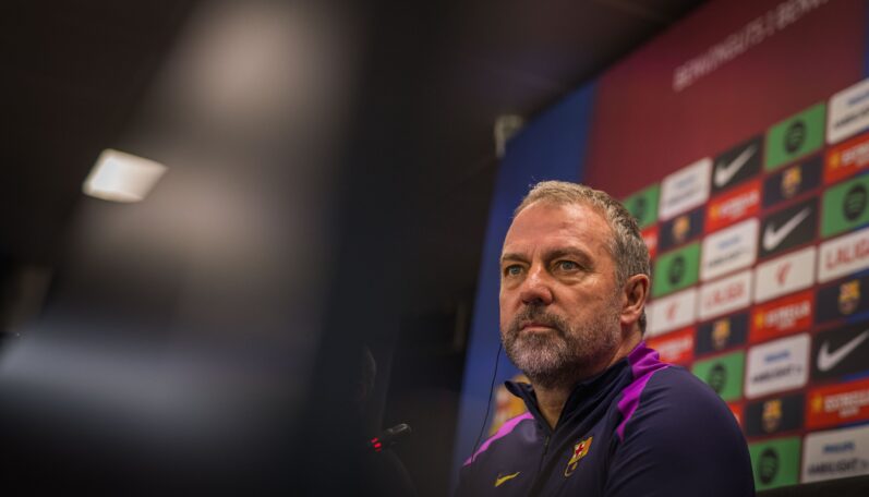 Tréner Hansi Flick mal počas sobotňajšej predzápasovej tlačovej konferencie optimistickú náladu. Vyjadril svoju nespokojnosť so zranením Pedriho a rovnako nahnevaný bol aj pri diskusii o Raphinhovom vyradení zo svetovej jedenástky FIFA The Best.