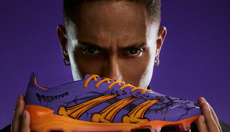 Spoločnosť Adidas spojila sily s Raphinhom a hrou UFL pri uvedení novej edície kopačiek Adidas x UFL Predator Cursebreaker. Hneď na prvý pohľad môžeme jasne určiť, že sa jedná o model, ktorý je ladený do halloweenskej atmosféry, s výraznou fialovou-oranžovou farebnou kombináciou. Na podrážke kopačky sa nachádza čierny pavúk, ktorého pavučiny sa tiahnu po celej kopačke.