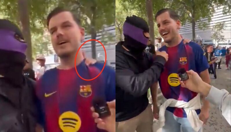 „Včera zakuklení neonacisti zo skupiny Ultras Sur Realu Madrid, vyvíjali nátlak a obťažovali fanúšika Barcelony priamo v okolí štadióna Bernabéu. Títo fašisti sa v Španielsku tešia beztrestnosti,“ napísal na sociálnej sieti X novinár Fonsi Loaiza, pričom priložil video, na ktorom fanúšik Barçy menoval hráčov, ktorí v minulosti pôsobili v Barcelone aj v Reale.